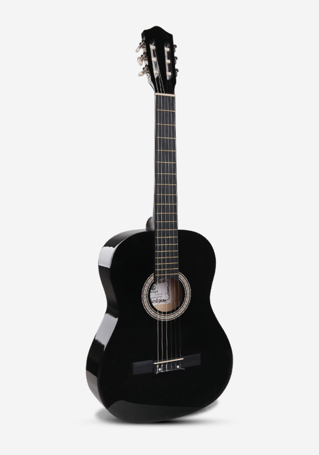 This 39-inch classical guitar, with its unique design and high-quality materials, brings you an extraordinary musical experience. The body and neck are made of basswood, a wood with a uniform texture, which gives the guitar a stable structure and excellent acoustic performance, making the sound full and full of charm. The plastic fingerboard is sturdy and durable, providing reliable support for your performance. The technical wood bridge ensures the uniform transmission of string tension, further optimizing the sound quality. The ABS nut effectively reduces the vibration loss of the strings, making the tone clearer and brighter. The glossy paint makes the whole guitar radiant, whether on stage or in daily practice, it can attract everyone’s attention. It is not only an instrument, but also a close partner in your musical journey. Whether you are a novice to the music hall or an experienced player, this guitar can meet your needs and accompany you to play moving melodies and write your own musical chapter.