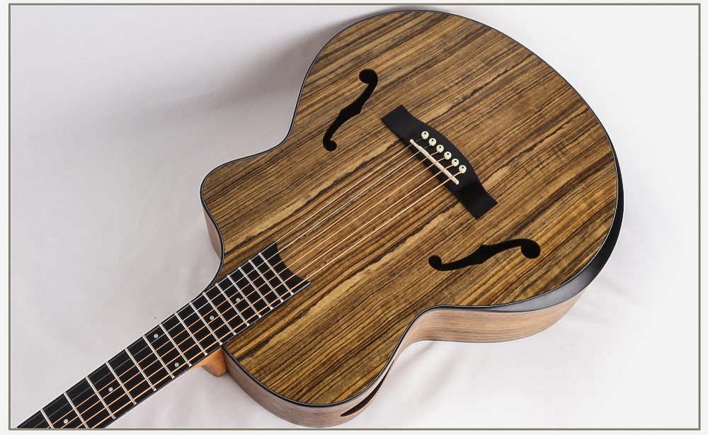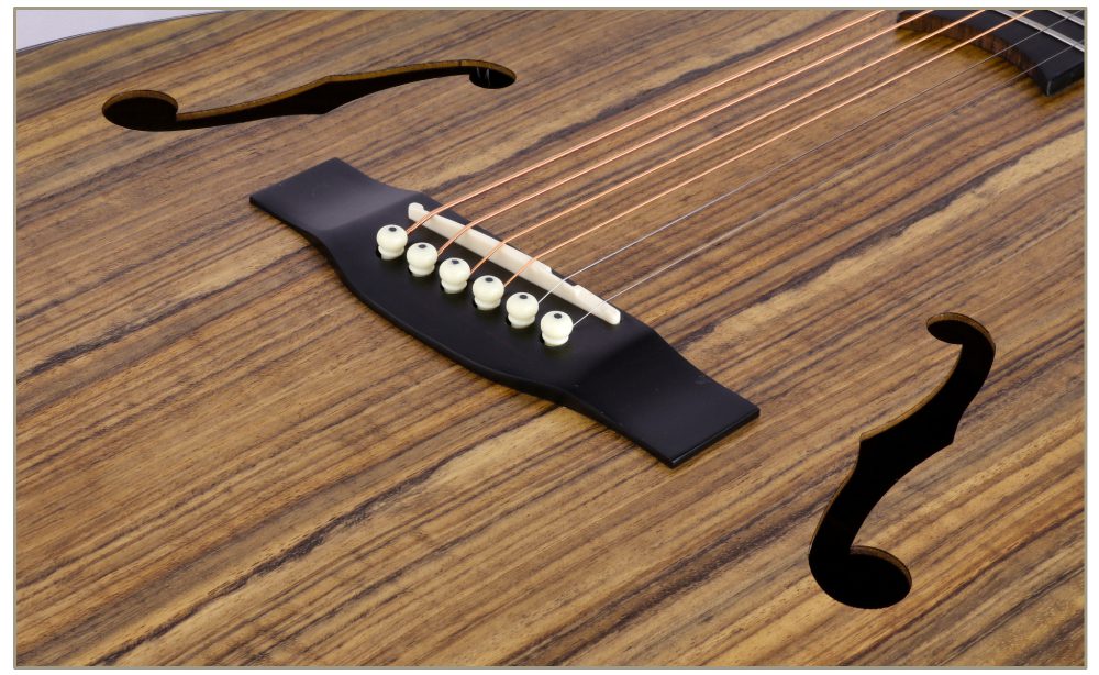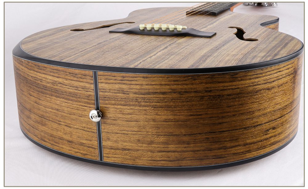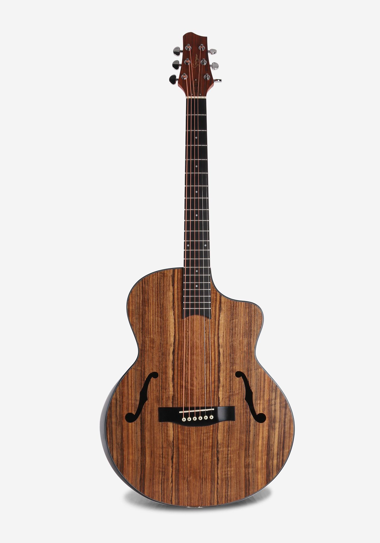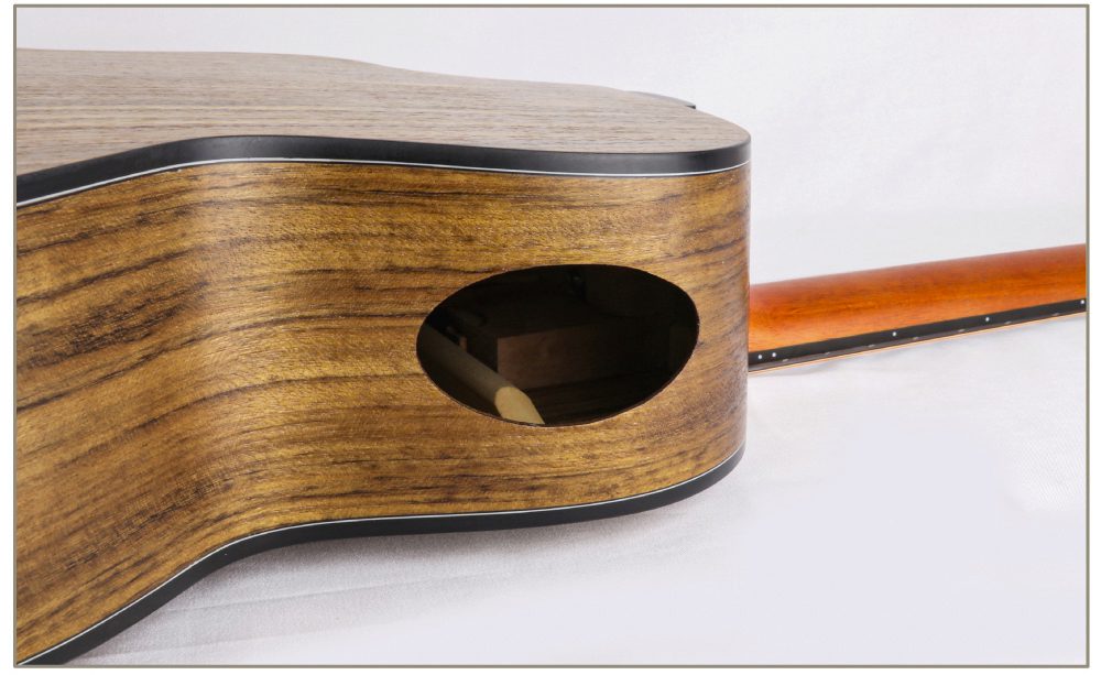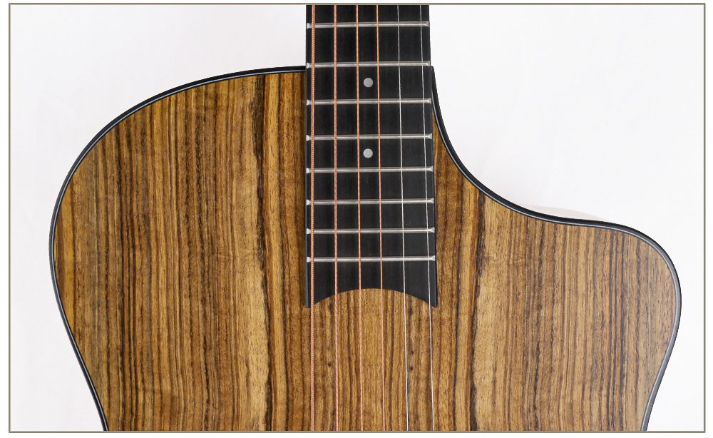 This guitar features a standard 41-inch size, making it convenient for playing and daily transport. The top, back, and sides are made of walnut, which has a beautiful grain and hard texture, providing a warm, rich, and layered tone that makes every note resonate fully.