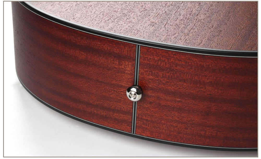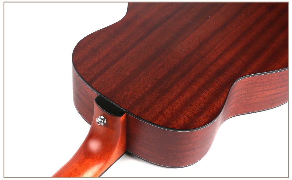 This is a 36-inch acoustic guitar that exudes unique charm. The top, back and sides are all made of mahogany, with natural and smooth texture and warm and charming tone. Mahogany gives this guitar a mellow and full tone, with bright and penetrating treble, warm and emotional midrange, and deep and elastic bass. The technical wood fingerboard is sturdy and durable, providing stable support and comfortable feel for your performance. The ABS edging not only increases the durability of the guitar, but also adds exquisite details to its appearance. Overall, this guitar shows extraordinary quality both in terms of sound quality performance and appearance design, which can satisfy your pursuit and love of music.