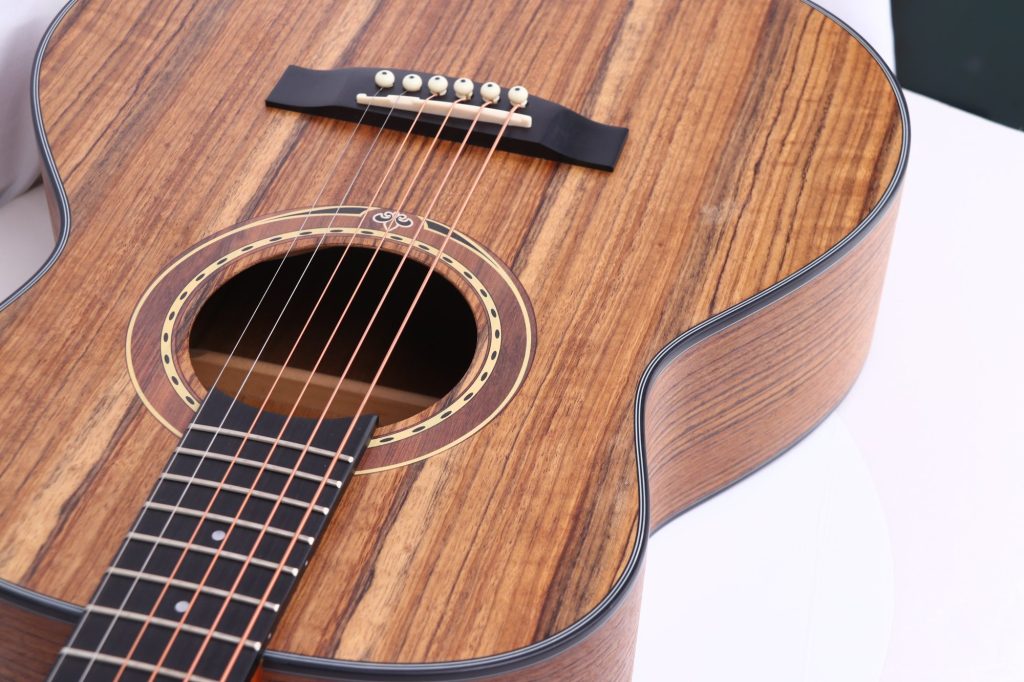 This 36-inch acoustic guitar is truly amazing. The spruce top gives it a bright, clear tone, with crisp highs and warm mids. The mahogany back and sides add rich resonance and a layered sound. The techno-wood fingerboard is durable and wear-resistant, and feels smooth, providing precision for playing. The ABS binding not only enhances the guitar’s durability, but also adds a sense of refinement. The Die-cast tuners ensure stable pitch, so you don’t have to tune frequently. Whether you’re shining on stage or expressing your emotions in your own time, this guitar is your ideal choice to accompany you in playing beautiful melodies and embarking on a musical journey