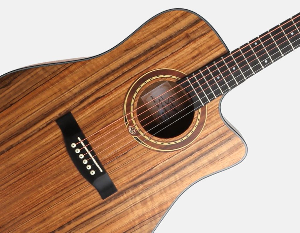 This acoustic guitar is unique. The top and back are made of walnut, which has a mellow and warm tone, rich in depth and layering. The durable technical wood fingerboard feels smooth, making your playing more precise and smooth. The mahogany neck provides excellent stability and a comfortable grip. The matte finish is low-key and elegant, reducing reflections and allowing you to focus more on the music. It is perfect for both lightly strummed and sung lyric songs and passionate rock music. With this guitar, you will fully release your inner musical emotions and start a wonderful musical journey, so that every note is full of stories and soul.